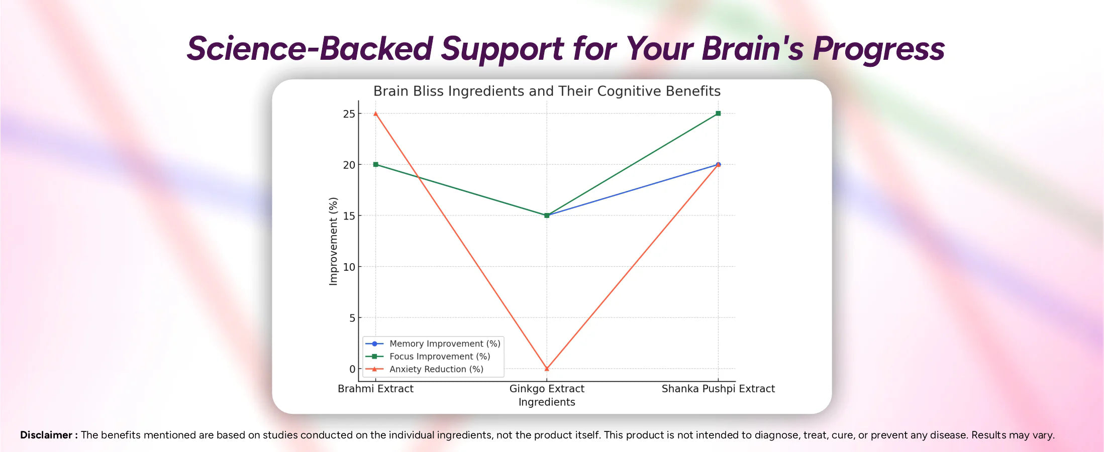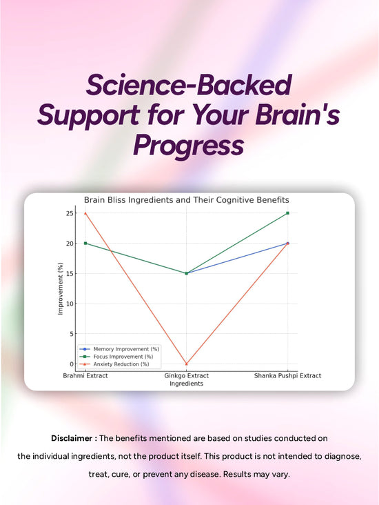 The powerful blend of Shankhpushpi and Brahmi enhances memory retention for teens and adults, promoting better cognitive performance and memory improvement in academic and competitive spheres. -