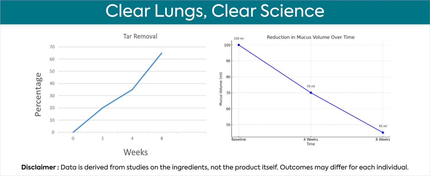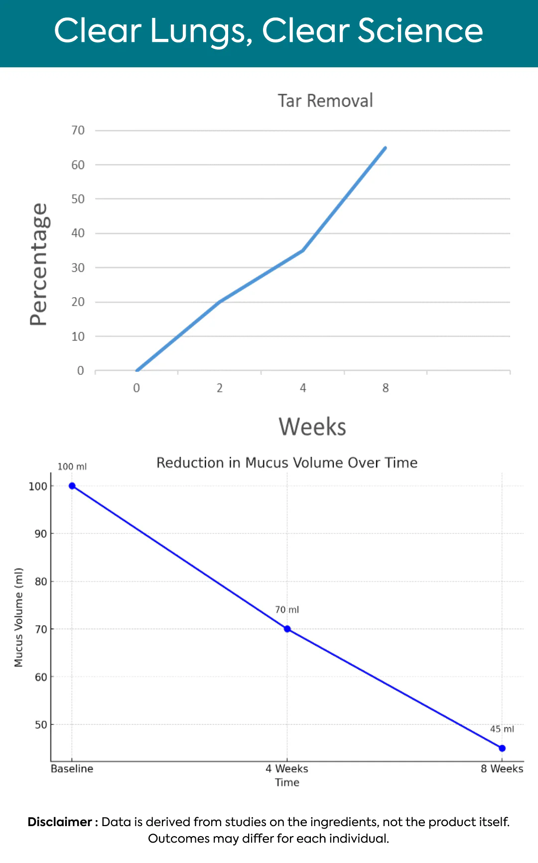 - TAR & MUCUS CLEANSEÂ : Formulated for Benefit to Smokers to Detoxify the Lungs, it helps in flushing out toxins & clearing Tar and Mucus for healthier Lungs.